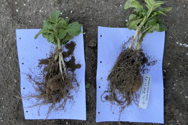 Links een plant zonder Ful-Power, rechts een plant met Ful-Power. Duidelijk te zien dat de rechter…
